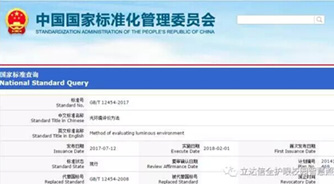 根據中華人民共和國國家標準公告2017年第18號,國家質量監(jiān)督檢驗檢疫總局、國家標準化管理委員會于2017年7月12日批準公布國家標準《光環(huán)境評價方法》